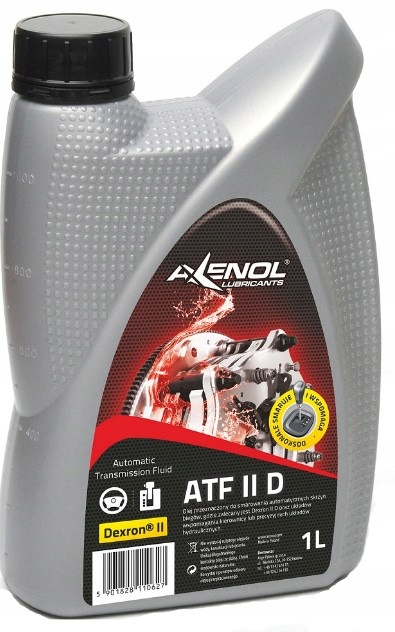 ATF II D do automatycznych przekładni samochodowych otrzymywany jest z rafinowanych destylatów ropy Ź naftowej uzupełnionych pakietem dodatków uszlachetniających o działaniu przeciwutleniającym, Ź przeciwkorozyjnym oraz poprawiającym własności smarne i odporność na pienienie, co gwarantuje spełnienie Ź wymagań stawianych w specyfikacjach zagranicznych i krajowych. Olej ATF II D wykazuje szereg zalet. To wysokiej jakości, mineralny olej ATF II D przeznaczony jest do Ź stosowania w automatycznych przekładniach samochodów osobowych, ciężarowych i autobusów, w których Ź producent zaleca stosowanie oleju typu Dexron; II D. Olej ATF II D zalecany jest również do stosowania w urządzeniach wspomagających układy kierownicze, w Ź sprzęgłach hydraulicznych samochodów osobowych i ciężarowych oraz w układach hydraulicznych wymagających Ź stosowania olejów typu ATF.